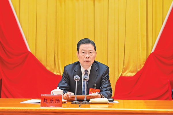 中共中央政治局常委、中央纪委书记赵乐际代表中央纪律检查委员会常务委员会作工作报告。中国纪检监察报记者 何韬 摄