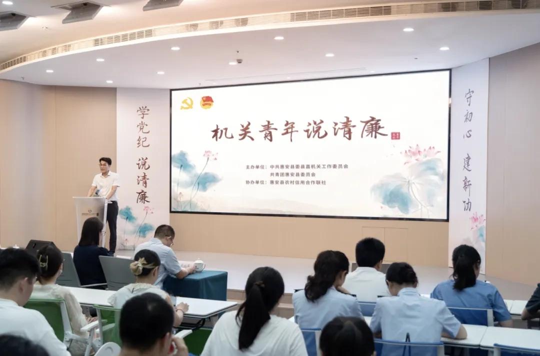 福建省泉州市惠安县组织各级各部门通过集体研讨、专题培训、主题演讲、旁听庭审等方式,深入开展年轻干部党纪学习教育。图为该县举办“机关青年说清廉”主题微宣讲活动现场。(康航 摄)