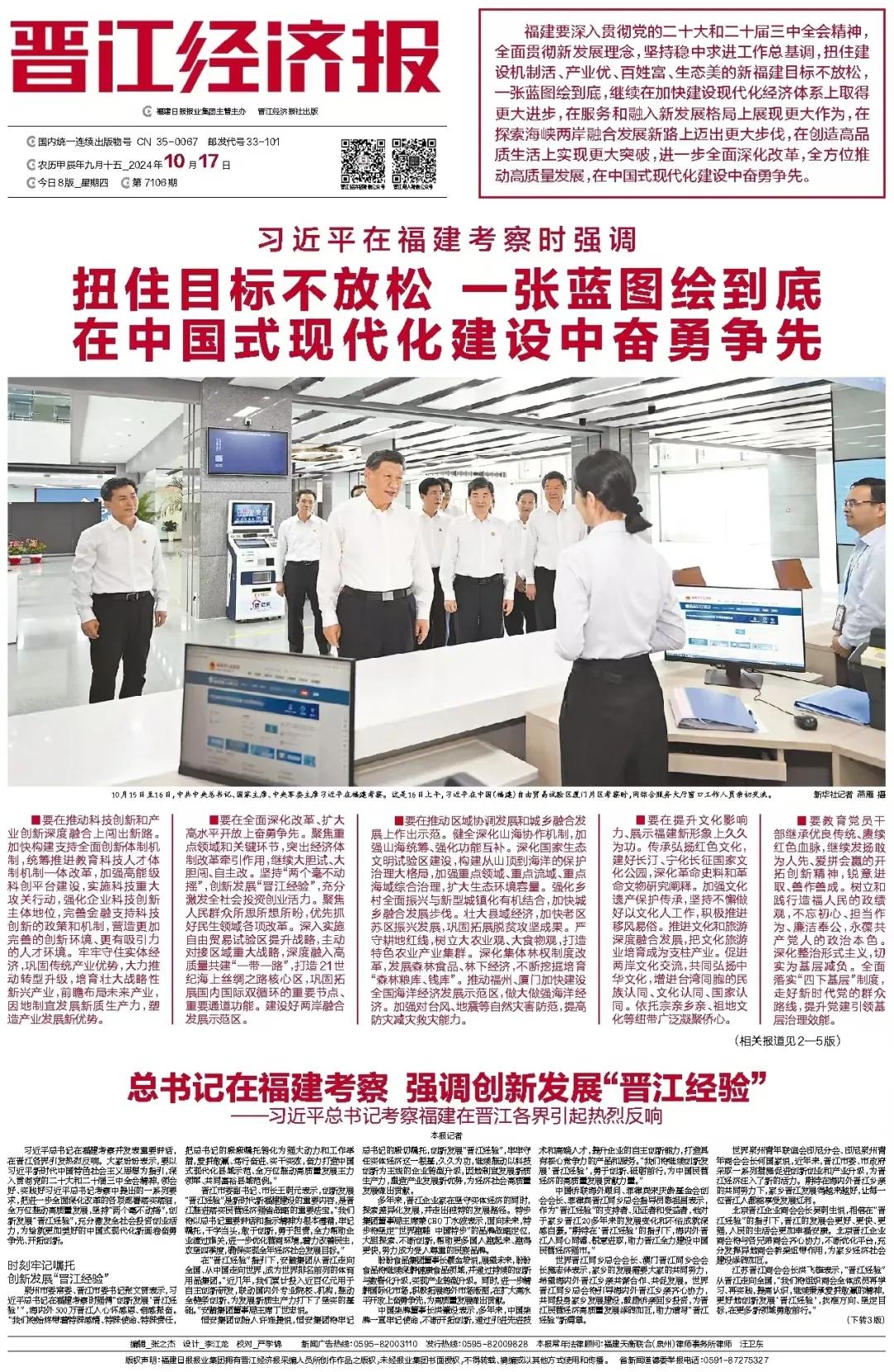 10月17日《新福建》客户端刊发《总书记在福建考察强调创新发展“晋江经验”——习近平总书记考察福建在晋江各界引起热烈反响》全文如下