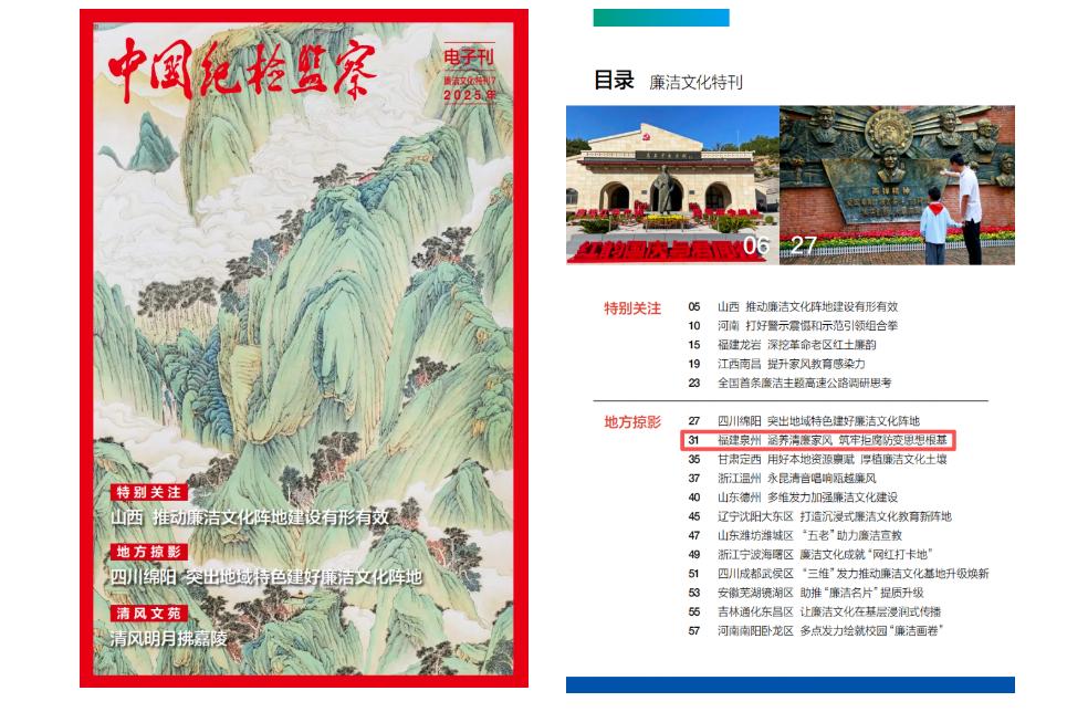 《中国纪检监察》杂志2025年廉洁文化特刊第7期刊发报道泉州《涵养清廉家风 筑牢拒腐防变思想根基》的经验做法