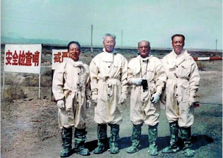 一次核爆炸试验后,林俊德(左一)和参试人员从试验场区完成取样任务后的合影。