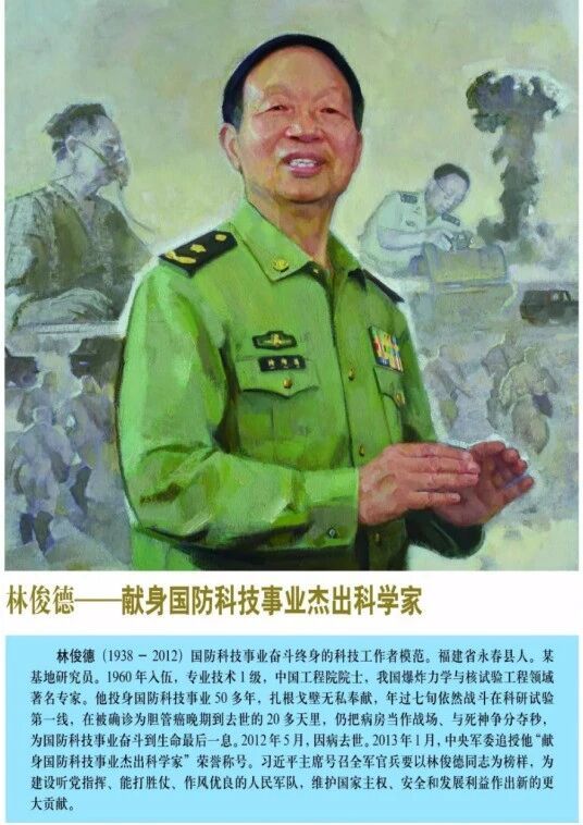直至生命最后一刻,身患重病的林俊德仍强忍剧痛坚守岗位,在病床上整理科研资料、交代工作事项,用行动诠释着“干惊天动地事,做隐姓埋名人”的忠诚担当。他一生淡泊名利、生活俭朴,却收获了重于泰山的荣誉:1993年晋升少将军衔,2001年当选为中国工程院院士,2012年当选全军践行当代革命军人核心价值观模范、新中国“最美奋斗者”,2013年当选“2012年度感动中国十大人物”、第四届全国道德模范并被中央军委追授“献身国防科技事业杰出科学家”荣誉称号,2018年成为全军挂像英模。习近平总书记在2019年新年贺词中指出:“今年,天上多了颗‘南仁东星’,全军英模挂像里多了林俊德和张超两位同志。……他们是新时代最可爱的人,永远值得我们怀念和学习。”这些荣誉,是对他赤胆忠心的最高褒奖,更是对他崇高精神的永恒铭记。